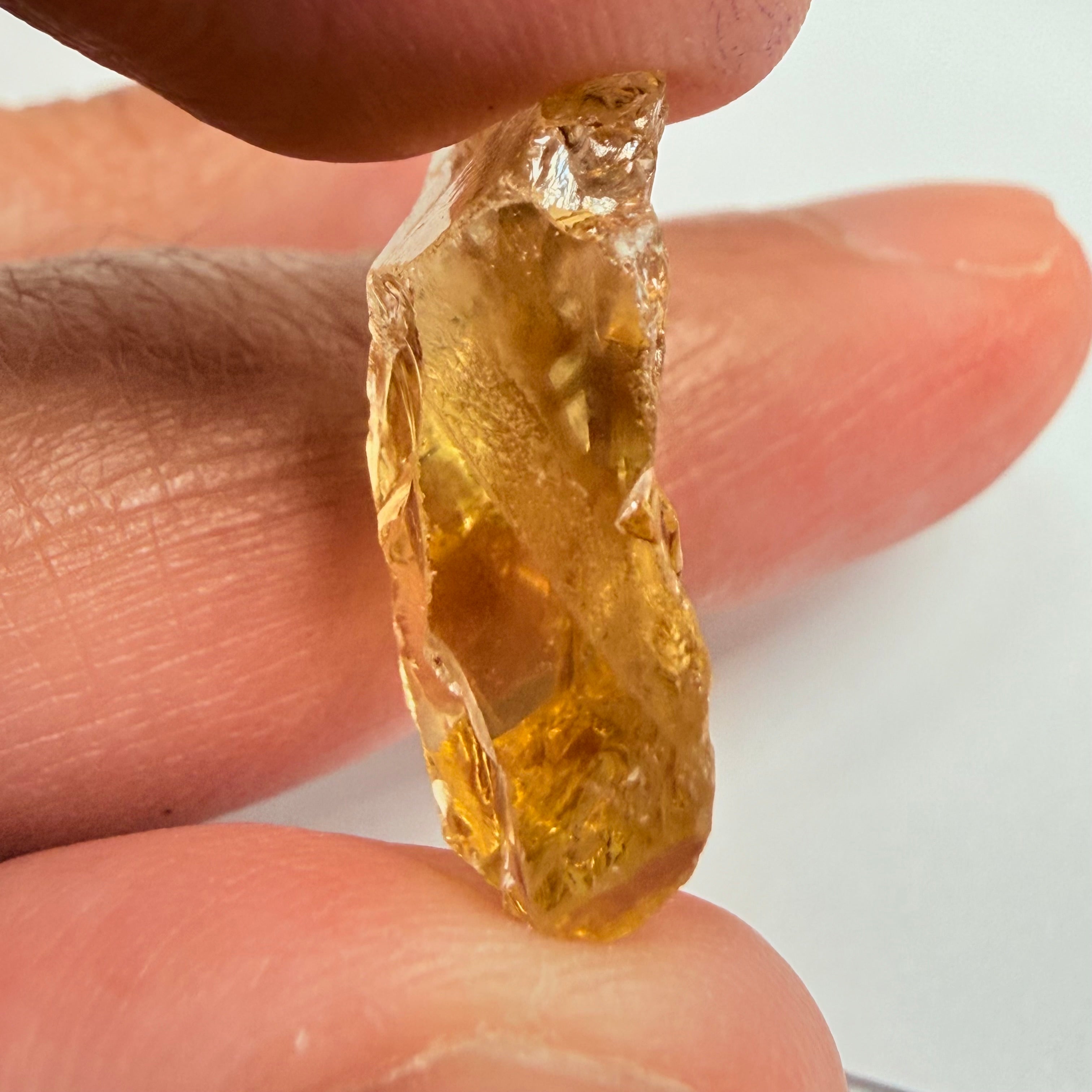 Citrine, 19.37ct, Zambia, Untreated Unheated, slight cracks on one end, rest VVS-IF, very flat shape but excellent for putting in jewellery as is