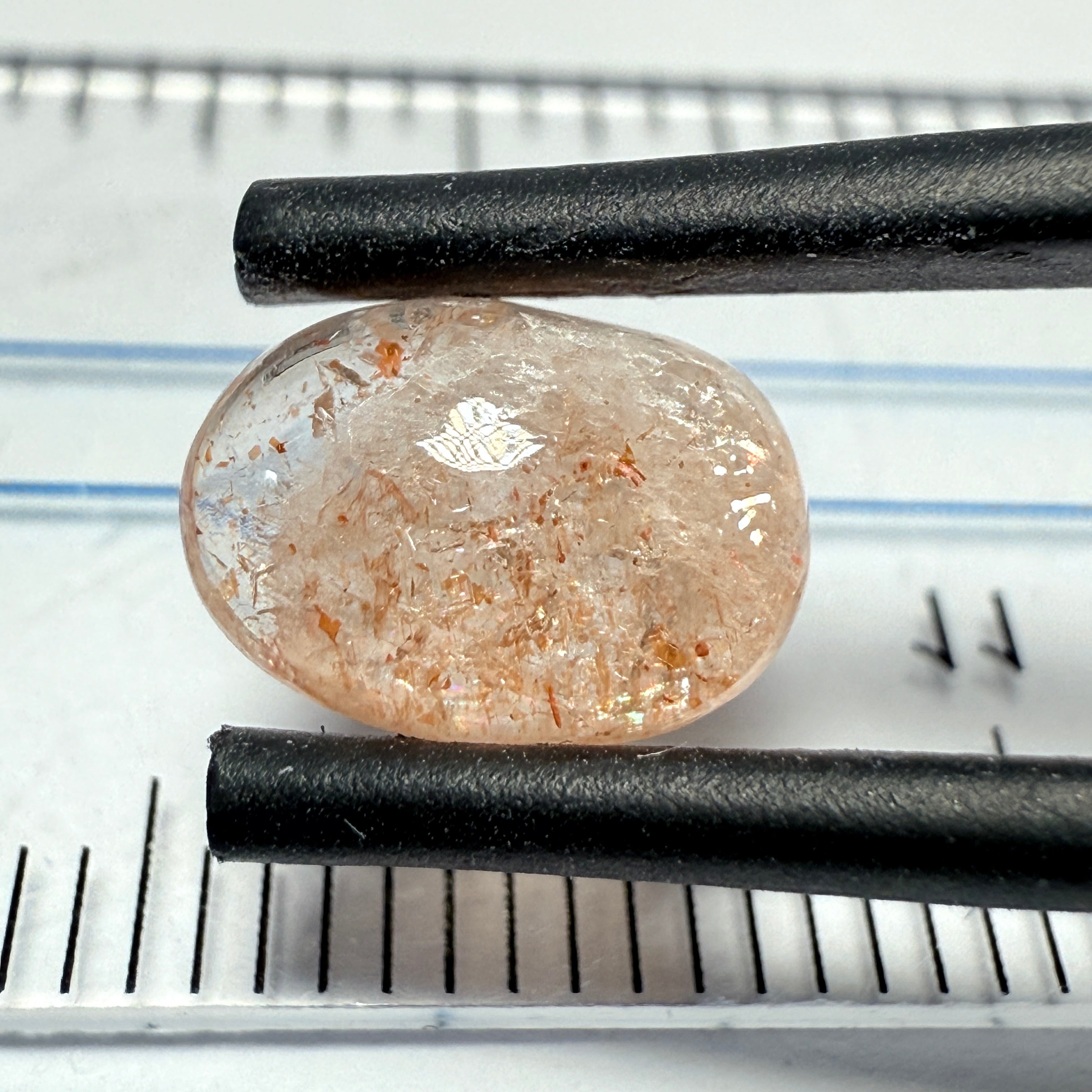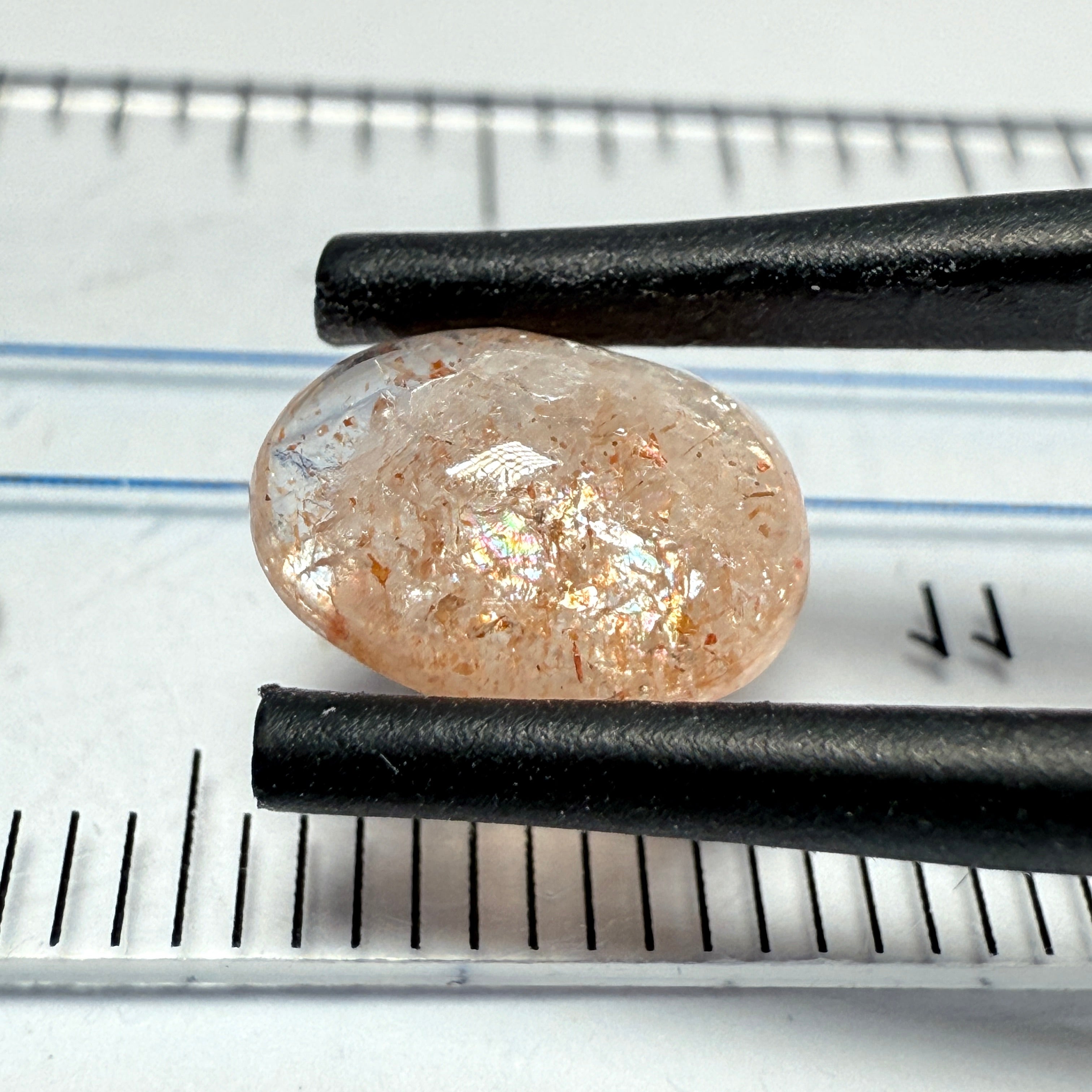 Confetti Sunstone Cabochon, 1.94ct, Tanzania, Untreated Unheated, flat backed
