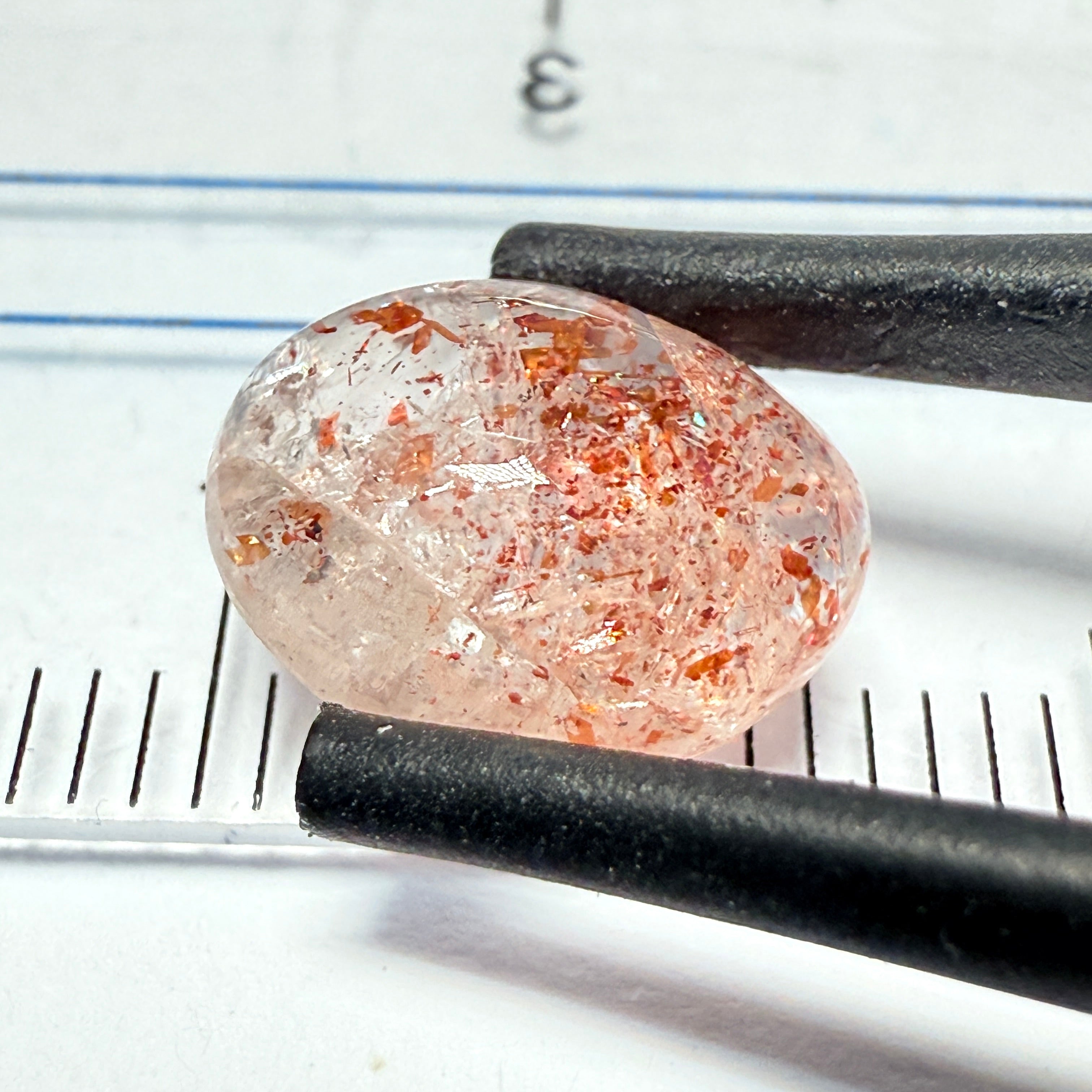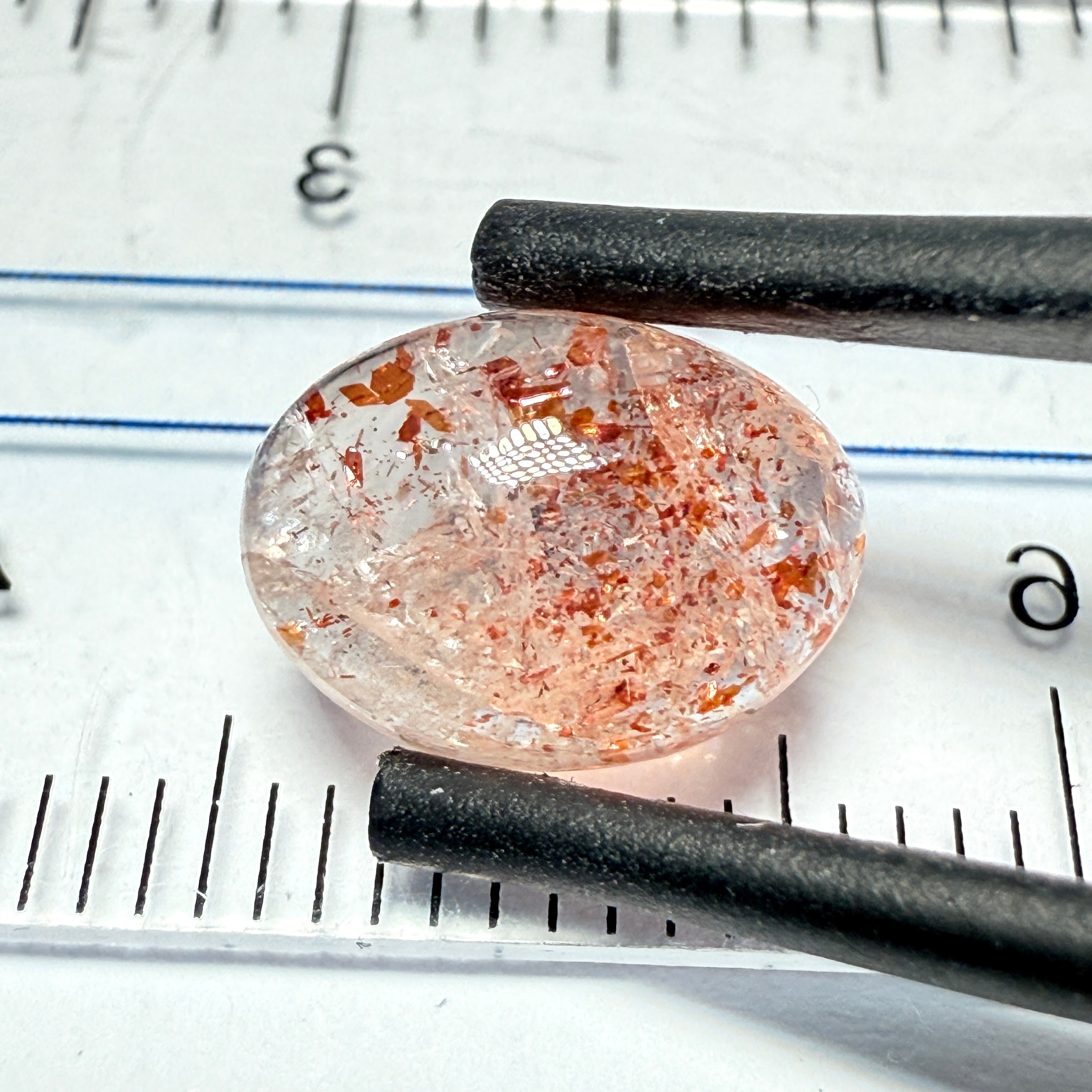 Confetti Sunstone Cabochon, 2.78ct, Tanzania, Untreated Unheated, flat backed