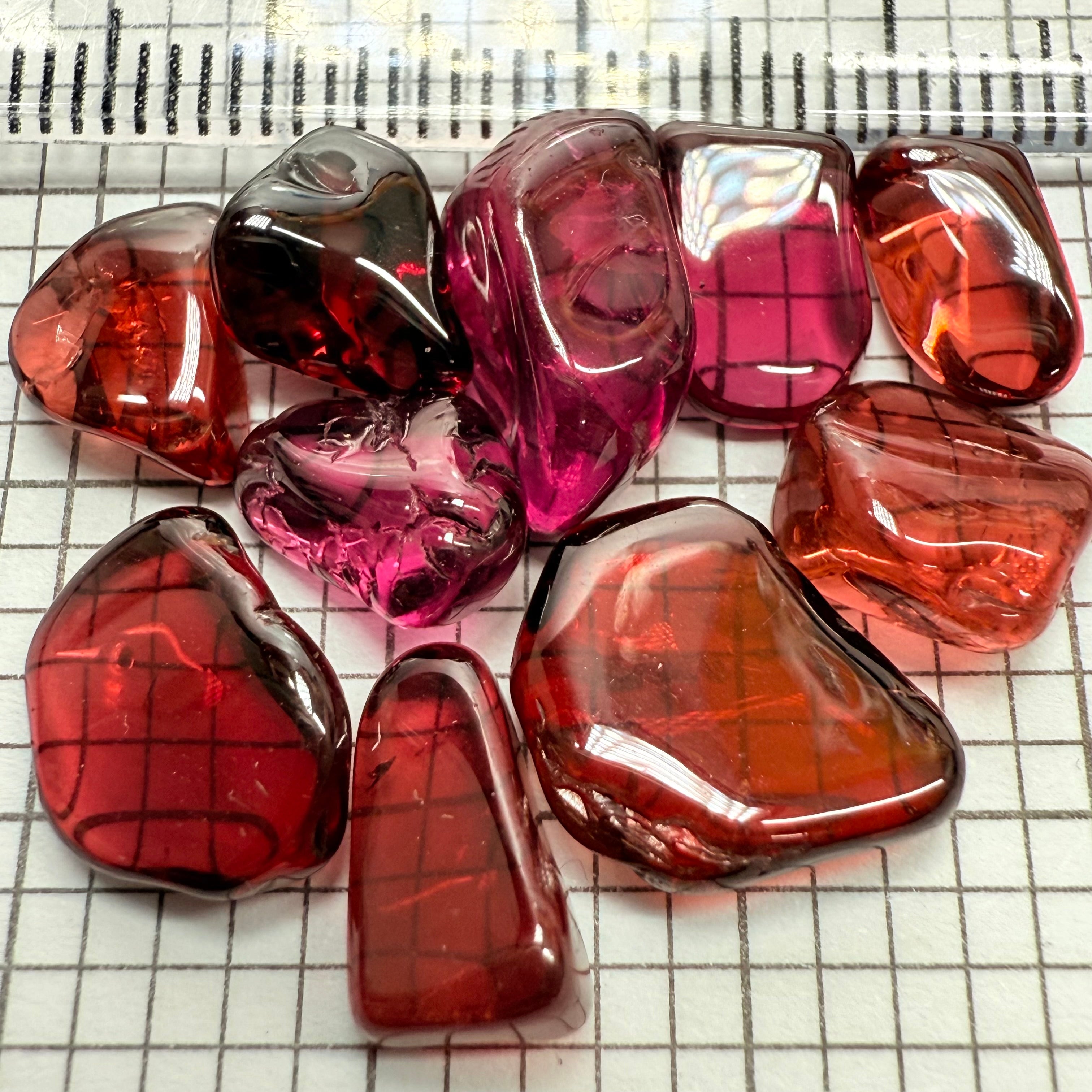 Mix Tanzanian Garnet Lot, Freeform Cabochons, 33.46ct, from multiple areas in Tanzania, Untreated Unheated, great for designers getting creative, very high polish, excellent transparency. 10 pc lot, 3.3ct av.