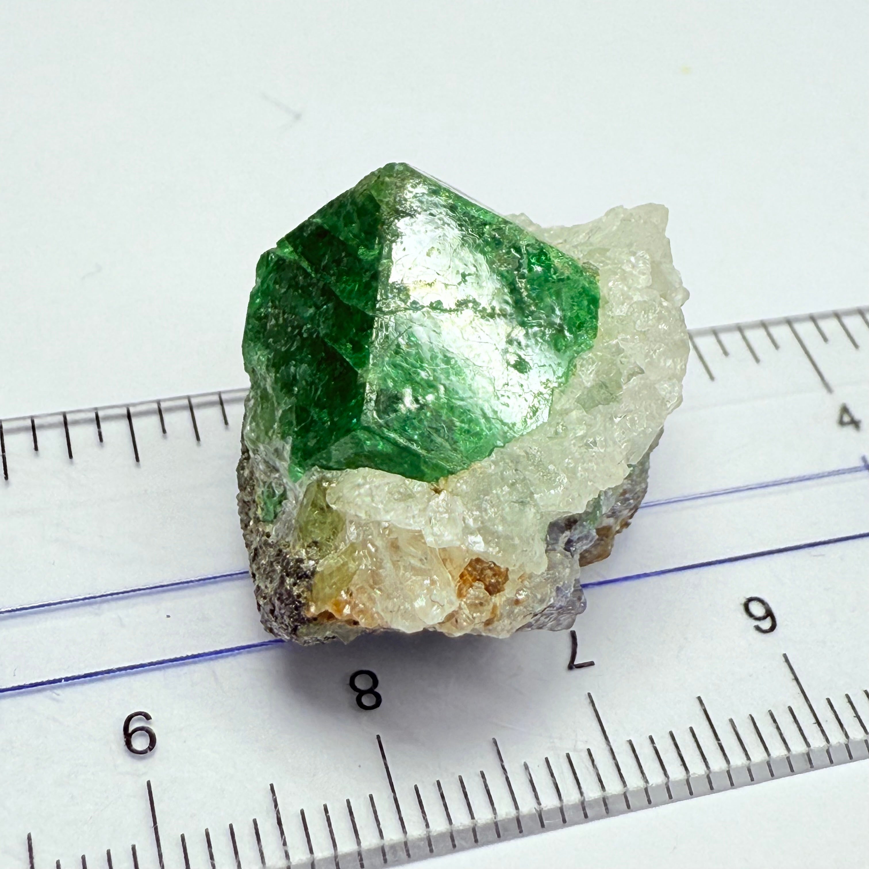 Tsavorite Garnet on Quartz and Graphite, 65.79ct, naturally free standing, Merelani, Tanzania, Unheated Untreated