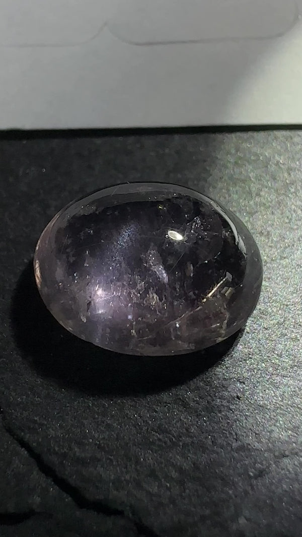 Sapphire Cabochon, 3.49ct, Umba Valley, Tanzania. Untreated Unheated. Yes that's a moving spot caused by silk positioning!