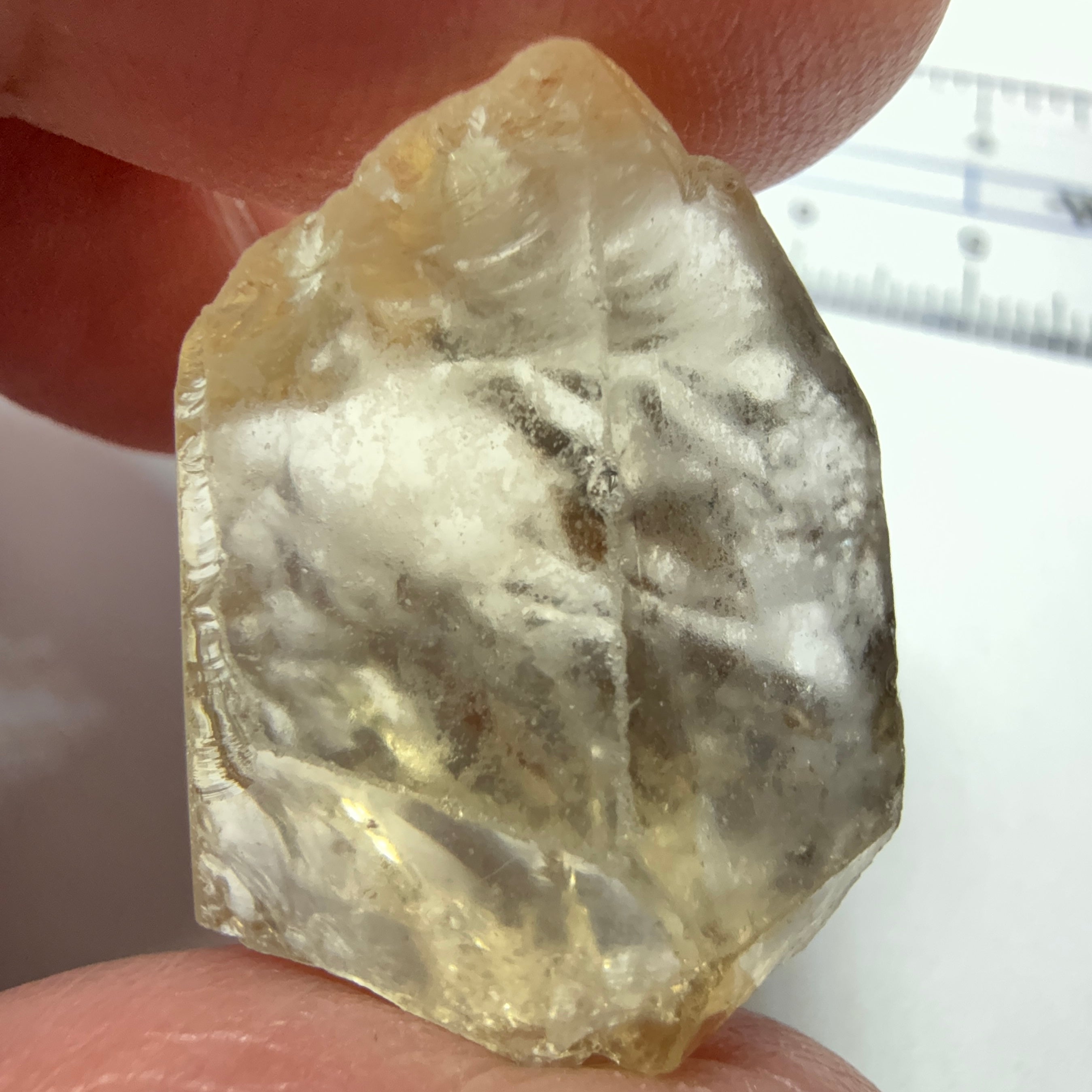Citrine, 19.37ct, Zambia, Untreated Unheated, slight cracks on one end, rest VVS-IF, very flat shape but excellent for putting in jewellery as is