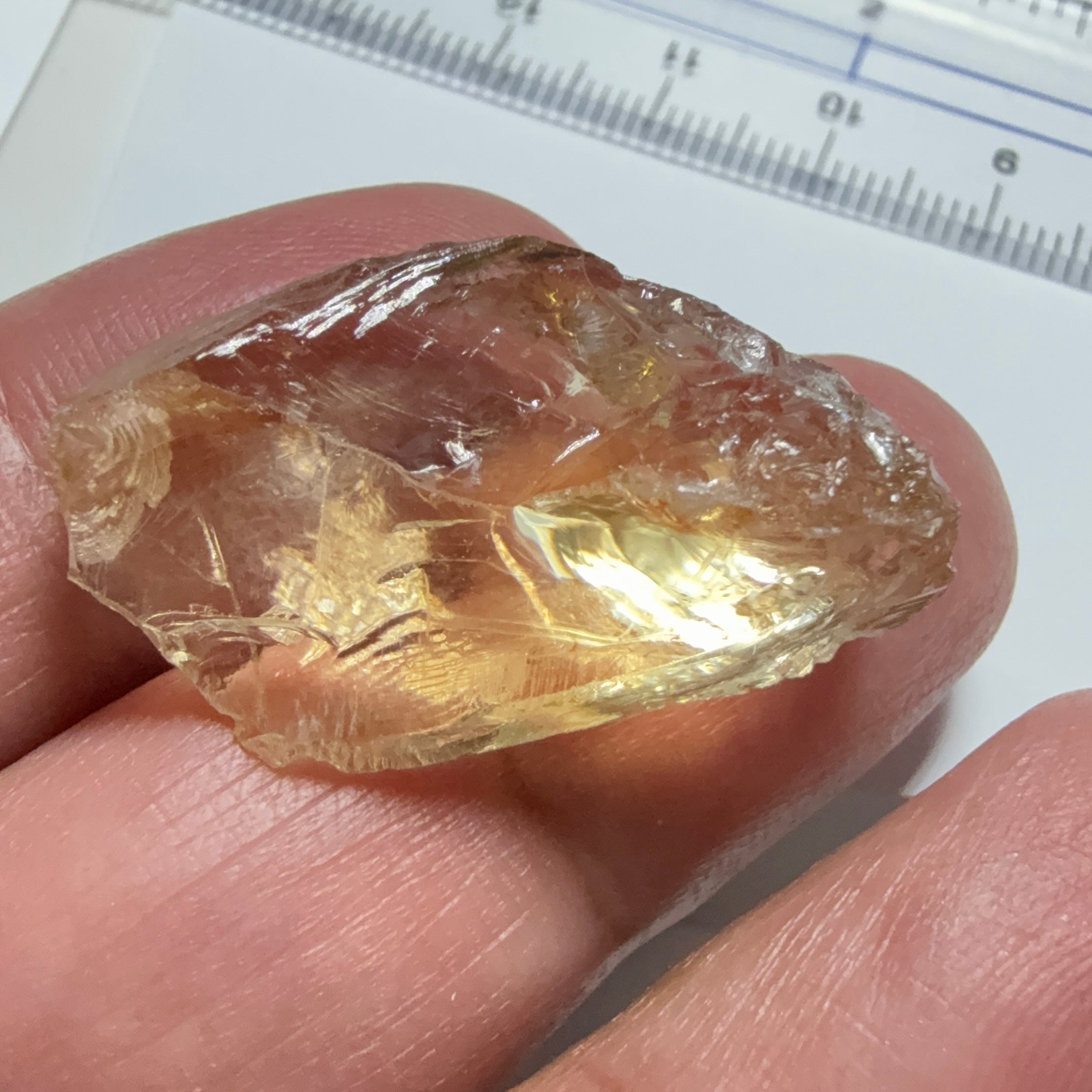 Citrine, 19.37ct, Zambia, Untreated Unheated, slight cracks on one end, rest VVS-IF, very flat shape but excellent for putting in jewellery as is