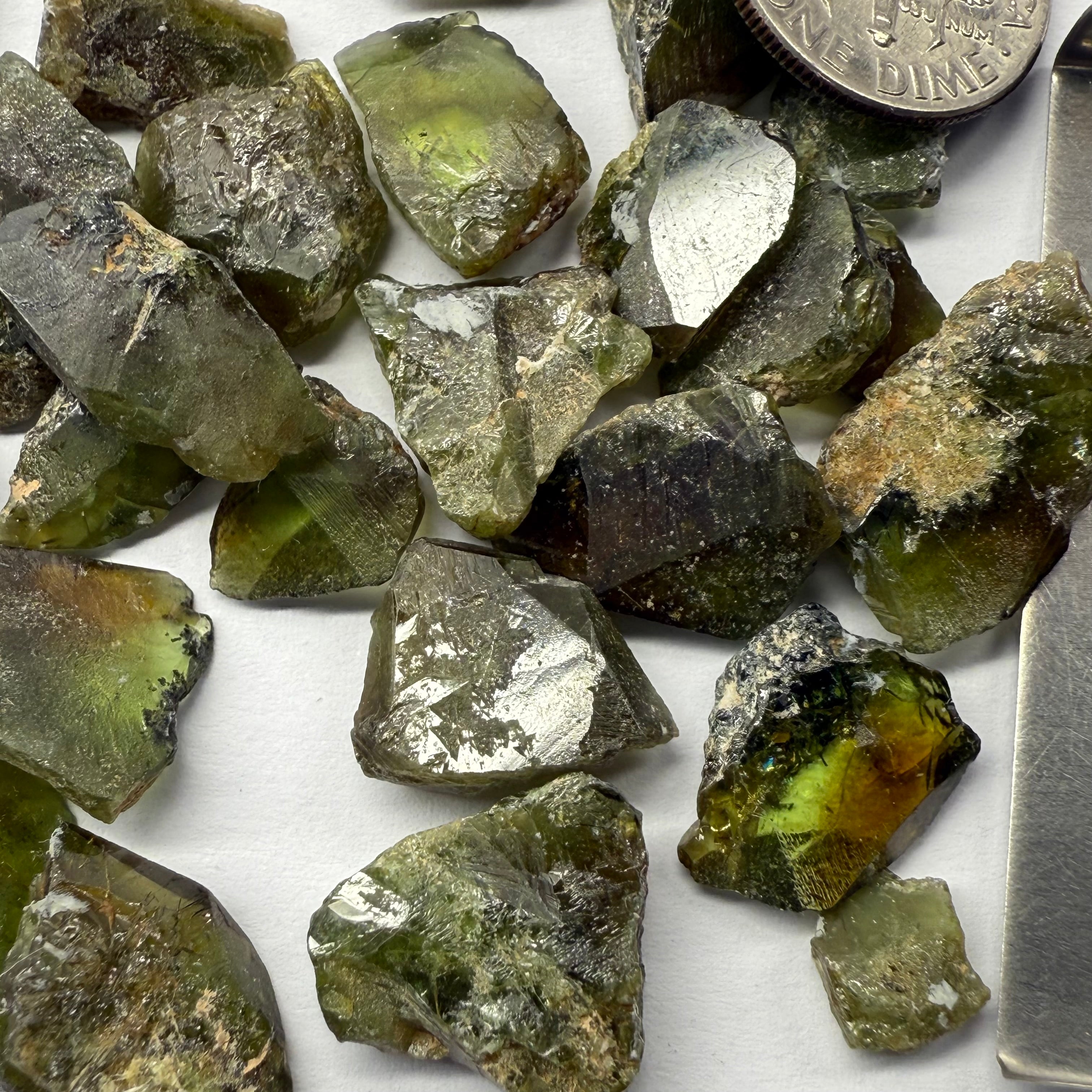 Gemmy Vanadium Sphene Crystals from Mondo (same mine as mondo quartz), Tanzania, Untreated Unheated. SINGLES price is per piece sold on a blind pour basis, specimen grade, you could facet them but they are classic Sphene “wedge” shapes